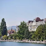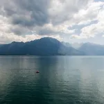 Широченные кровати, горячий завтрак, замечательный бассейн. Наш номер был идеальный, из него открывался ПРЕЛЕСТНЫЙ вид на озеро. Кроме того, не забудьте взглянуть на Шильонский замок, что находится недалеко от отеля. Сам отель находится в стильном здании, есть красивый сад. Вайфай был бесплатный.